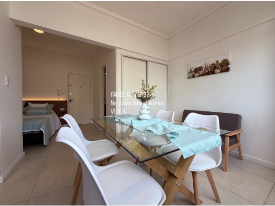 Dólares AmericanosDepartamento 1 ambiente desplazado al frente con ventanal. Luminoso. Vista abierta. Baño completo. Cocina separada. Recciclado y amoblado.